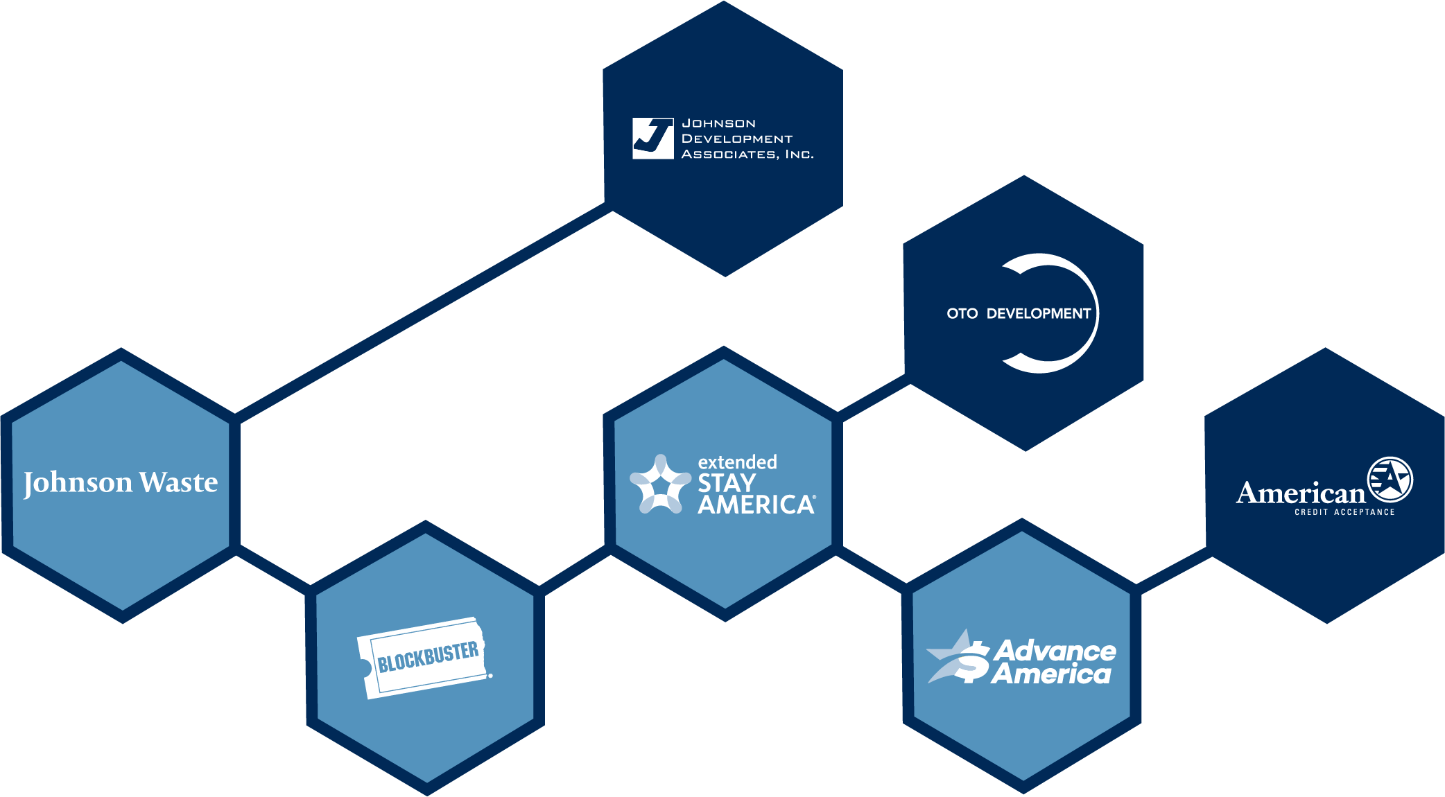 Today, The Johnson Group continues to create lasting value with three primary operating companies. Building on a legacy of past success, Johnson Development Associates (1986), OTO Development (2004), and American Credit Acceptance (2007) are all poised to capitalize on future opportunities. Nimble, privately held, and well capitalized, The Johnson Group is fueled by exceptional talent and driven by a core set of Guiding Principles that continue to deliver superior long-term results.